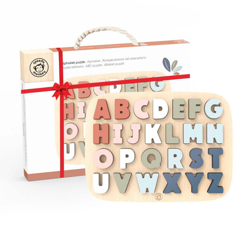 SPEEDY MONKEY Alphabet Puzzle - Colourful Wooden Letters, Non-Toxic Paint, Child-Safe, FSC Certified, Premium Quality - Educational Kids Toys, Montessori Toys for 1 Year Old, Jigsaw Board