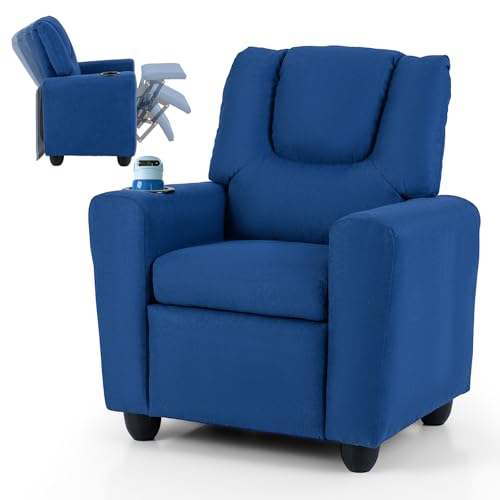 COSTWAY Kids Recliner Chair, Adjustable Children Armchair Sofa with Cup Holder, Footrest, Toddler Gaming Lounge Chair for Boys Girls (Fabric, Blue)