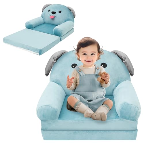 WAMEITF Kid Couch Chair, Foldable Kids Sofa Multifunctional Chair, Children Reading Armchair for 1 to 4 Years Old Kids, Convertible Sofa to Lounge, Foam Filled Kid Couch for Living Room(blue dog)