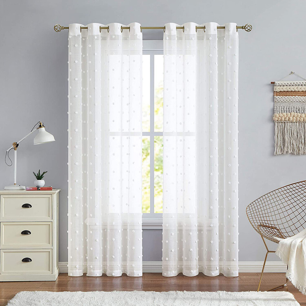 Children's Room Voile Curtains Lightweight Coffee Plain Eyelet 214x102 cm Transparent Linen for Bedroom Living Room