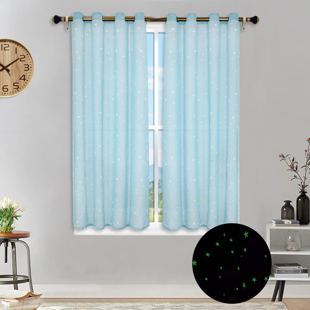 Luminous Stars Children's Room Curtains Blue Starry Semi-Sheer Voile Top Eyelet 2 Panels W52xH54 Inches