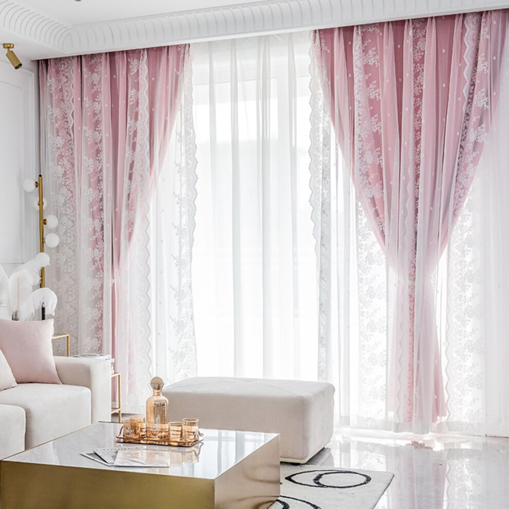 Curtains Bedroom Decorative Curtains Children's Double Curtains Pleated Sheer Covering Room Darkening Pretty Chic Princess,132.08x213.36 cm,2Pcs