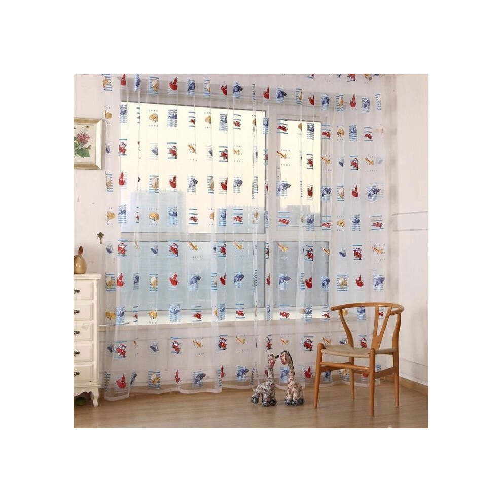 1m x 2m 2pcs Children's Curtains Car Pattern Sheer Voile Curtains for Bedroom Door Window