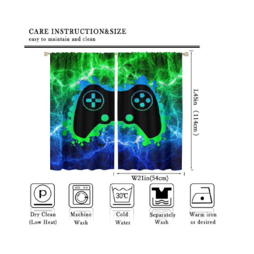 42x45inch Green Blue Game Console Pattern Curtains Children For Bedrooms