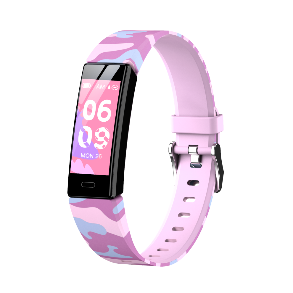 (Pink) 0.69 inch IPS Screen Heart Rate Blood Pressure Monitor 20 Life Reminder Multi-Sport Modes IP68 Waterproof Children Smart Watch