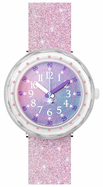 Flik Flak FCSP107 PEARLAXUS Pink Glitter Silicone Strap Watch