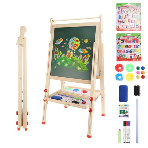 Dripex Kids Easel, Children's Wooden Art Easel Foldable, Double-Sided Magnetic Blackboard & Whiteboard for Kids and Toddlers, Chalkboard with Painting Art Supplies