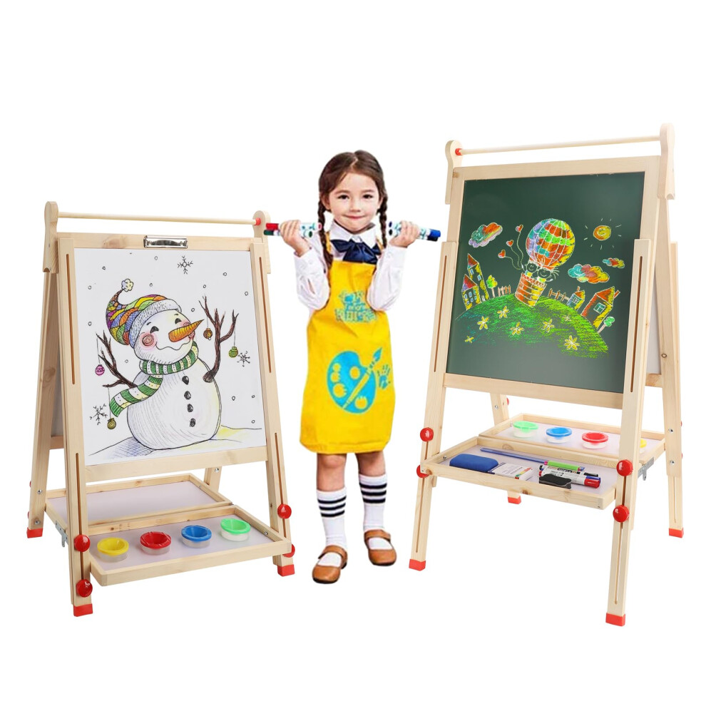 Kids Wooden Easel Double Sided Adjustable Art Craft Fun Children Drawing Board