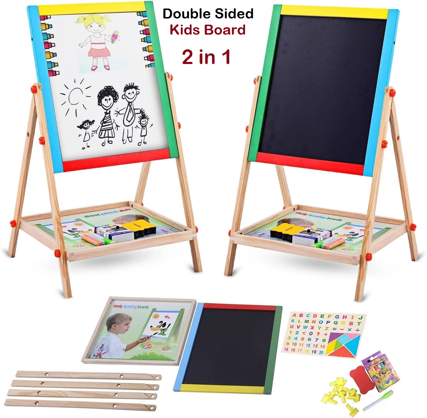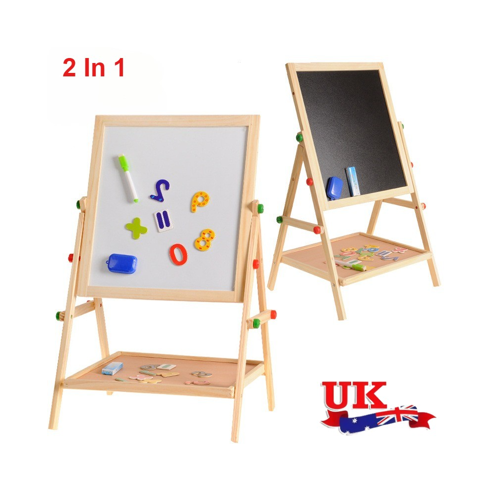 2 in 1 Kids Wooden Easel Blackboard Whiteboard Children Drawing Art Chalk Board