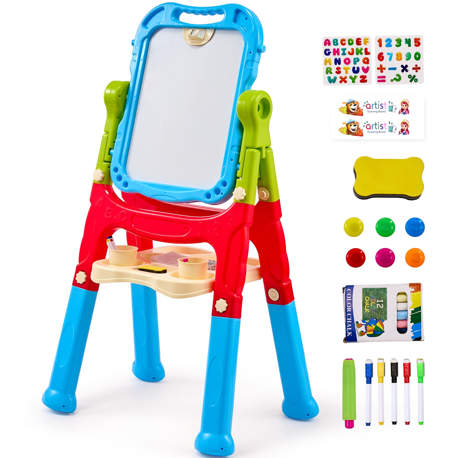 4 in 1 Kids Easel with Magnetic Whiteboard Chalkboard, Kids Drawing Board Toddlers Painting Easel, Childrens Art Easel for Kids with Height Adjustable & Rotatable, Gifts for 3 4 5 6 7 Year Old Girls