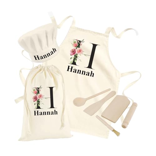 Hoolaroo Personalised Kids Aprons Age 6-12 For Cooking Childrens Baking Gifts Personalised Apron Kids Cooking Utensils Set Wooden - Black Letter Design