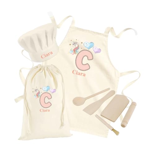 Hoolaroo Personalised Kids Aprons For Girls Cooking Childrens Baking Gift Set Custom Apron Kids Cooking Utensils Wooden Tools Pink Unicorn