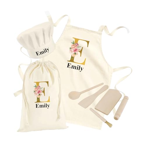 Hoolaroo Personalised Kids Aprons Age 6-12 For Cooking Childrens Baking Gifts Personalised Apron Kids Cooking Utensils Set Wooden - Gold Letter Design