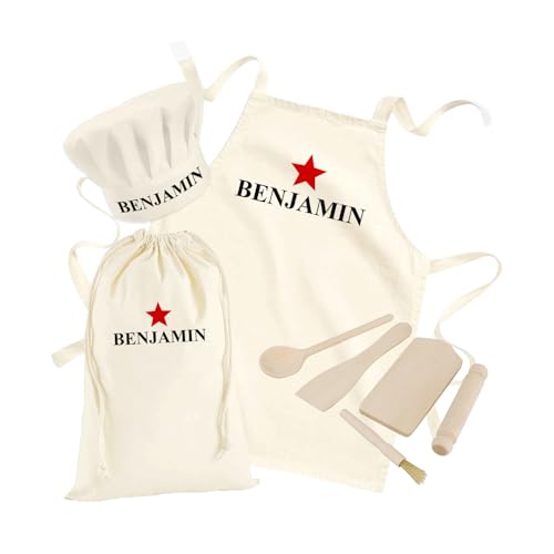 Hoolaroo Personalised Kids Aprons Age 6-12 For Cooking Childrens Baking Gifts Personalised Apron Kids Cooking Utensils Set Wooden - Red Star
