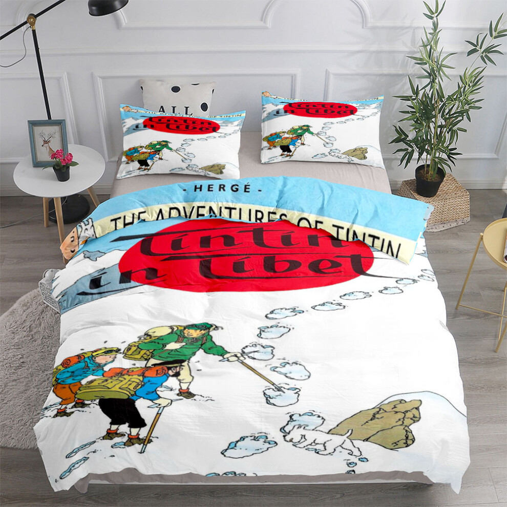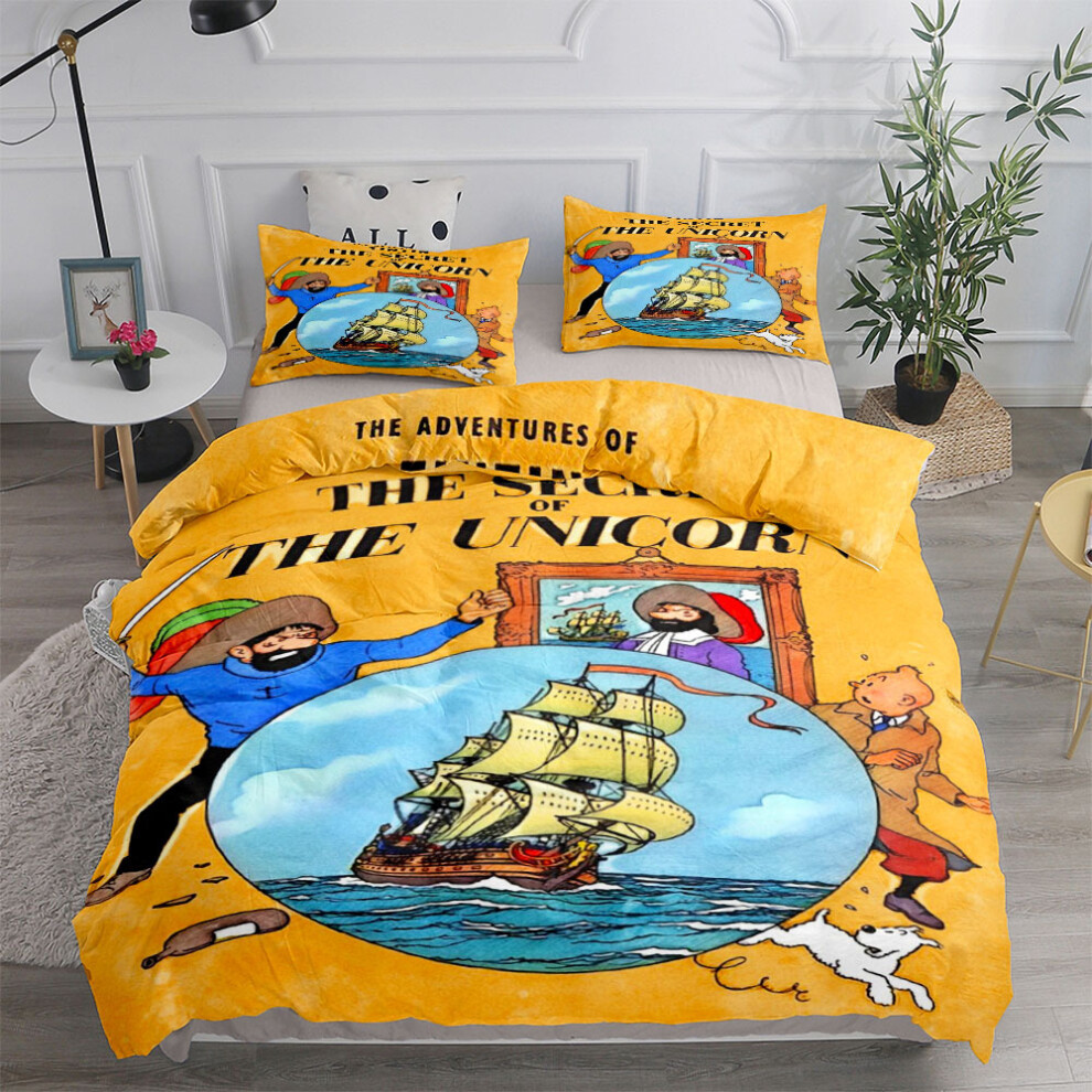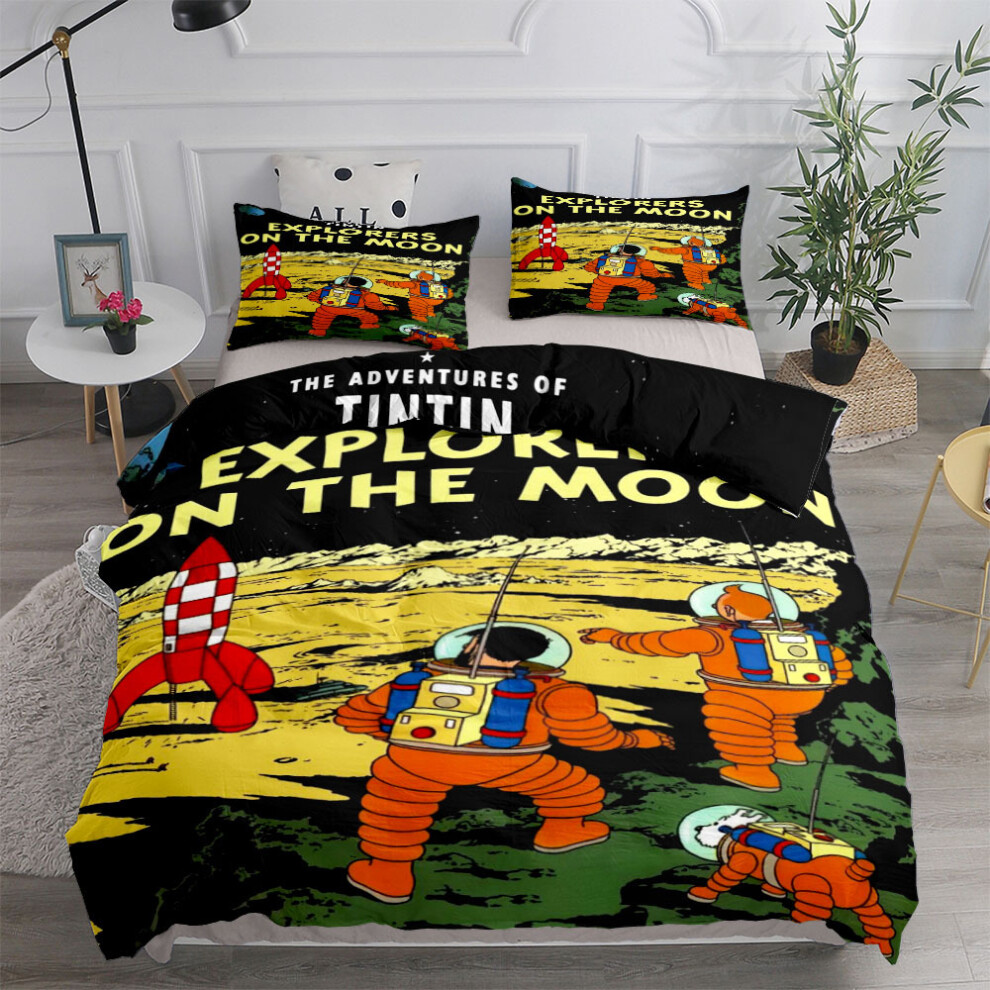 (12132tintin, UK DOUBLE 200x200cm) The Adventures of Tintin digital print three-piece children's bedding set