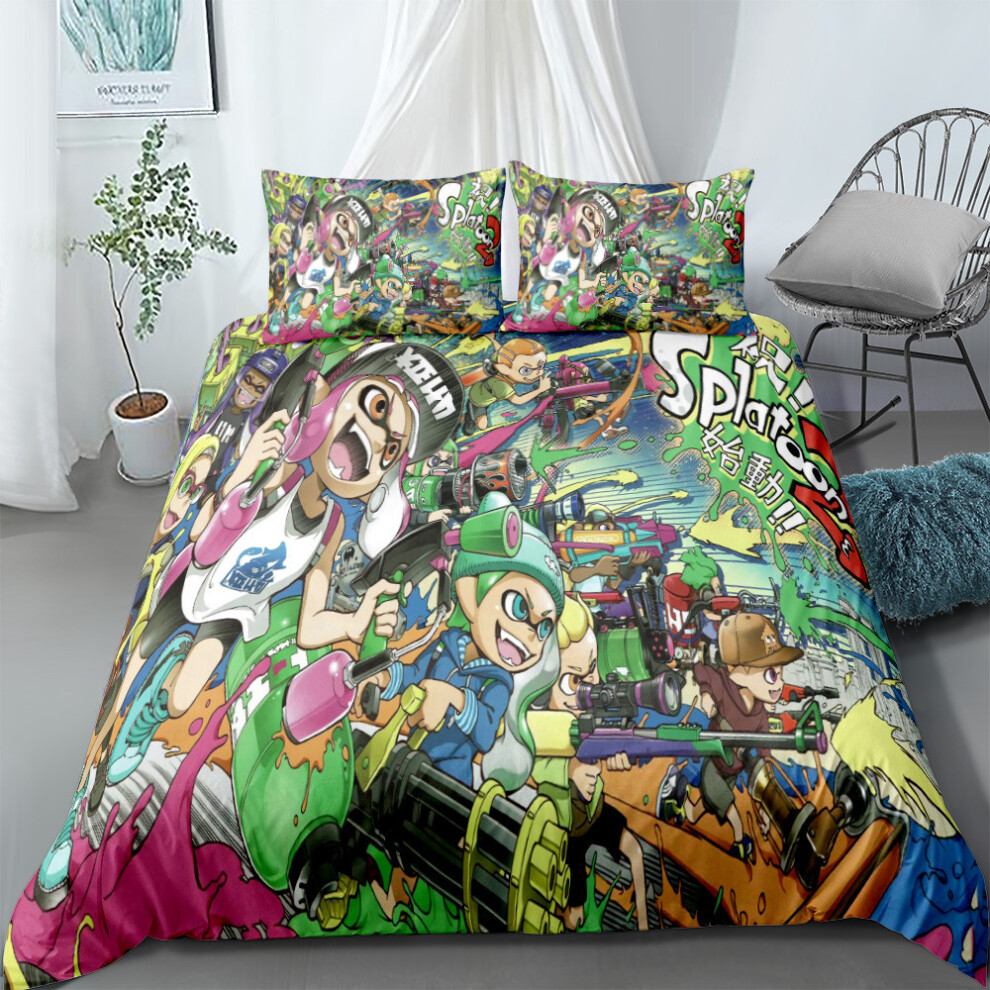 (09125spl, UK DOUBLE 200x200cm) Splatoon digital print children's three-piece bedding set