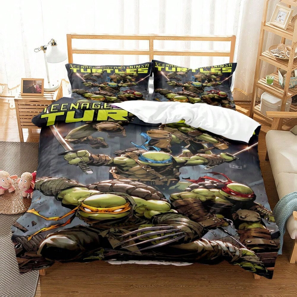(111101 Divine Turtle, UK DOUBLE 200x200cm) Ninja Turtles Classic Cartoon Digital Print Children's Bedding Three-Piece Set