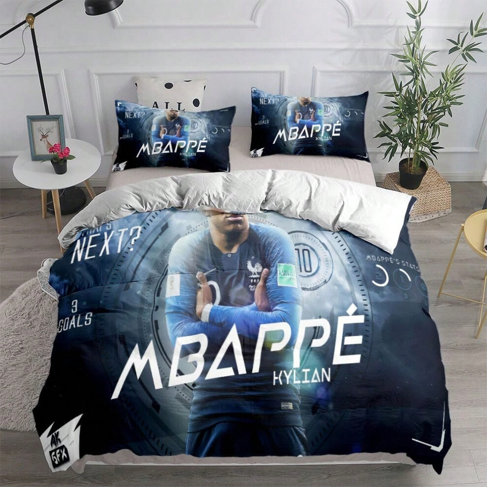 (06125 Mbappé, UK DOUBLE 200x200cm) Football star digital print children's bedding three-piece set