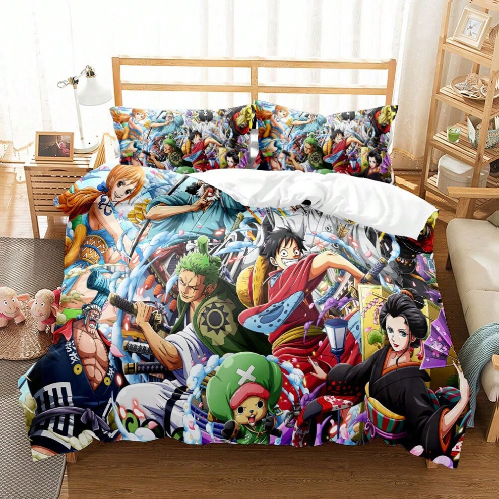 (1218luffy, UK DOUBLE 200x200cm) Luffy digital printed children's bedding three-piece set