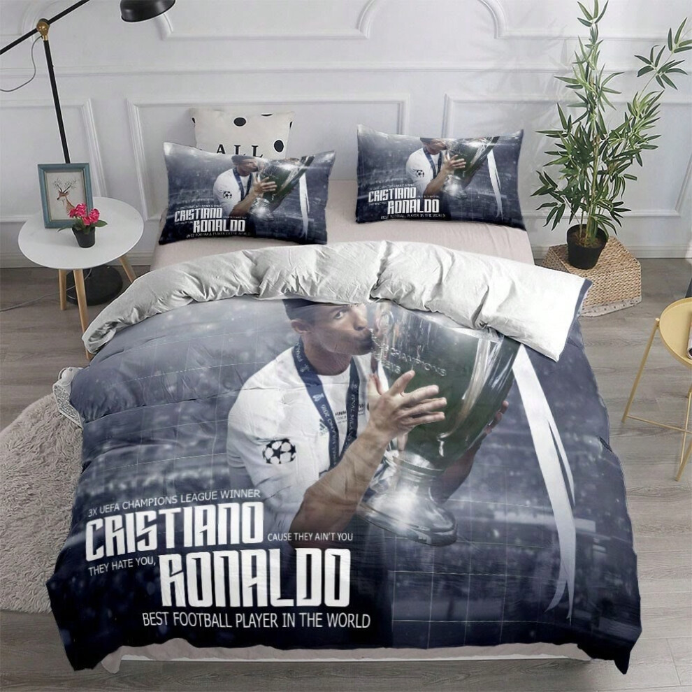 (04101C Ronaldo, UK DOUBLE 200x200cm) Football star digital print children's bedding three-piece set