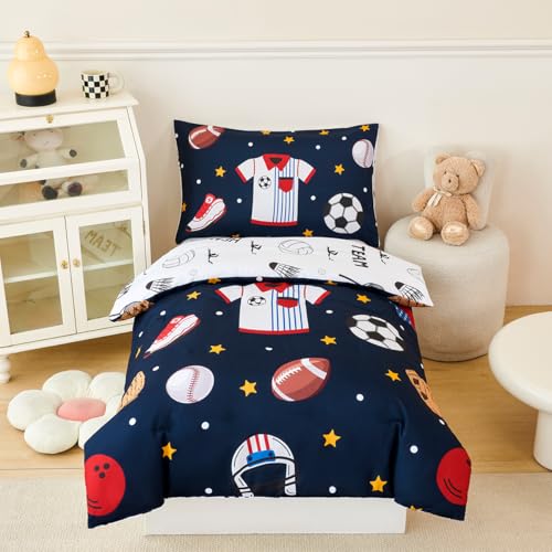 STYHO Sport Bedding Set Double Size 3 Pieces Reversible Soccer Ball Kids Duvet Cover Set for Boys Girls Soft Microfiber Colorful Children’s Bedding Quilt Cover Set(Sport, Double)