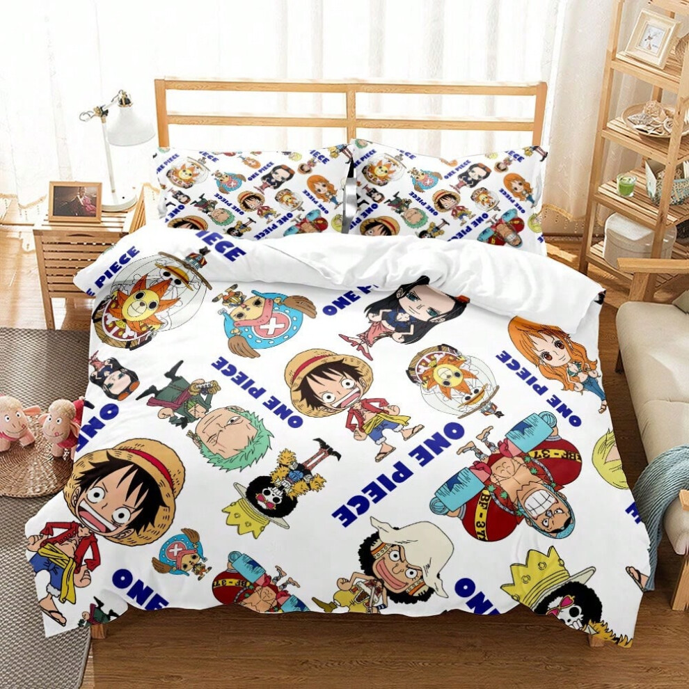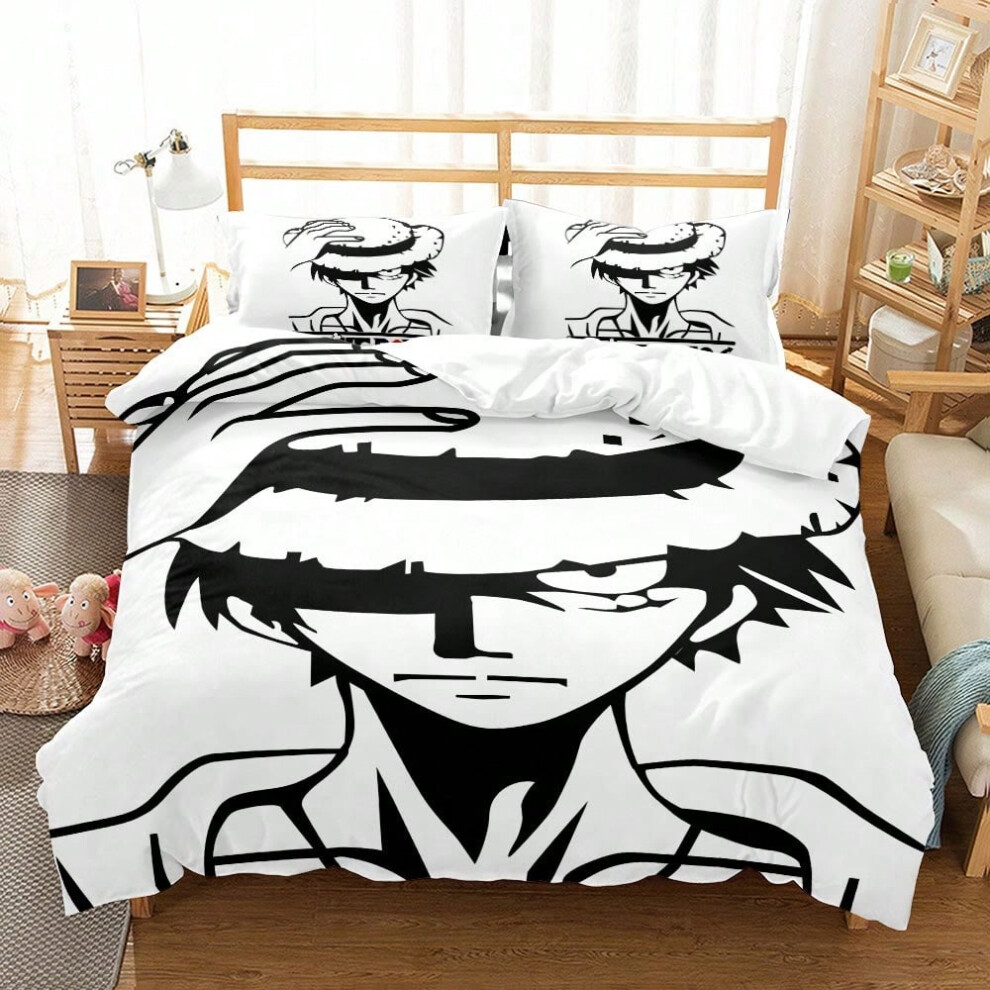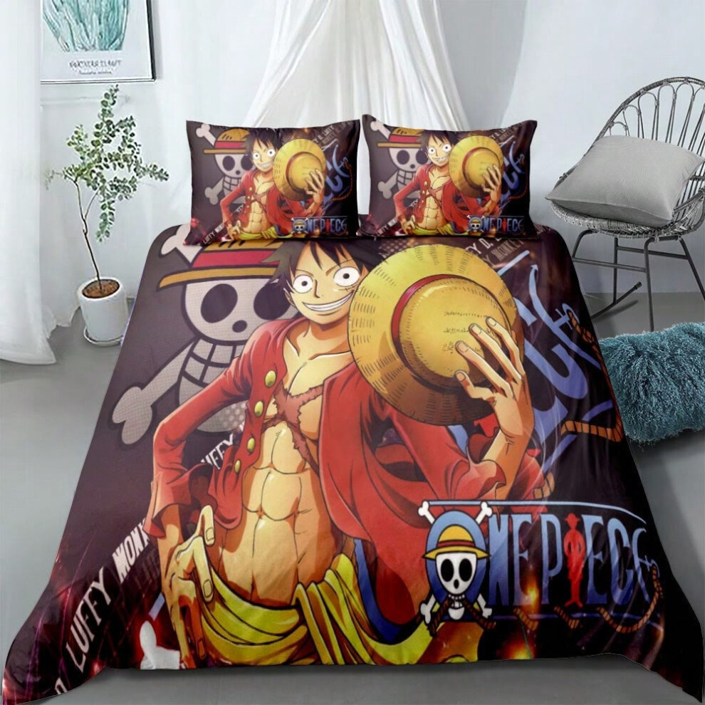 (Straw Hat Luffy, UK DOUBLE 200x200cm) Luffy digital printed children's bedding three-piece set