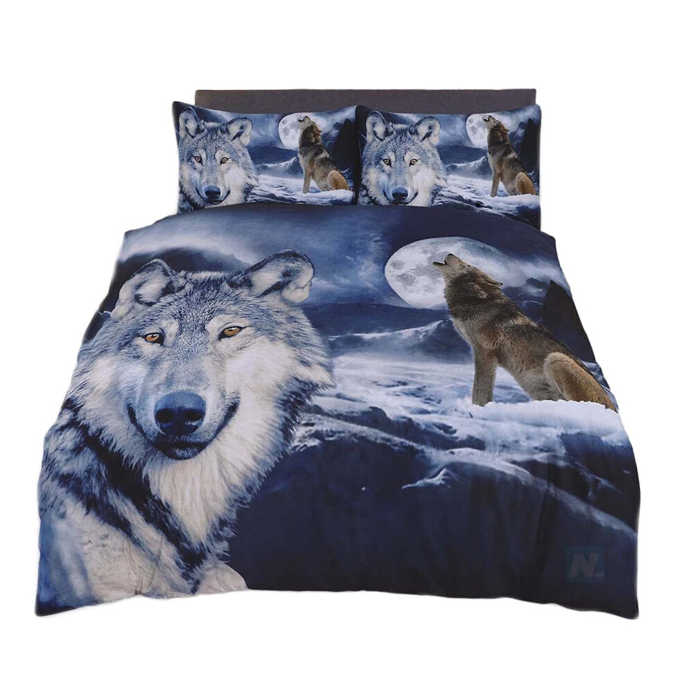 Northern Luxe NORTHERNLUXE - 3D Duvet Cover set Animal Effect for Children's and Adults Printed Quilt Bedding Set with Pillow Cases (Wolf, Double)