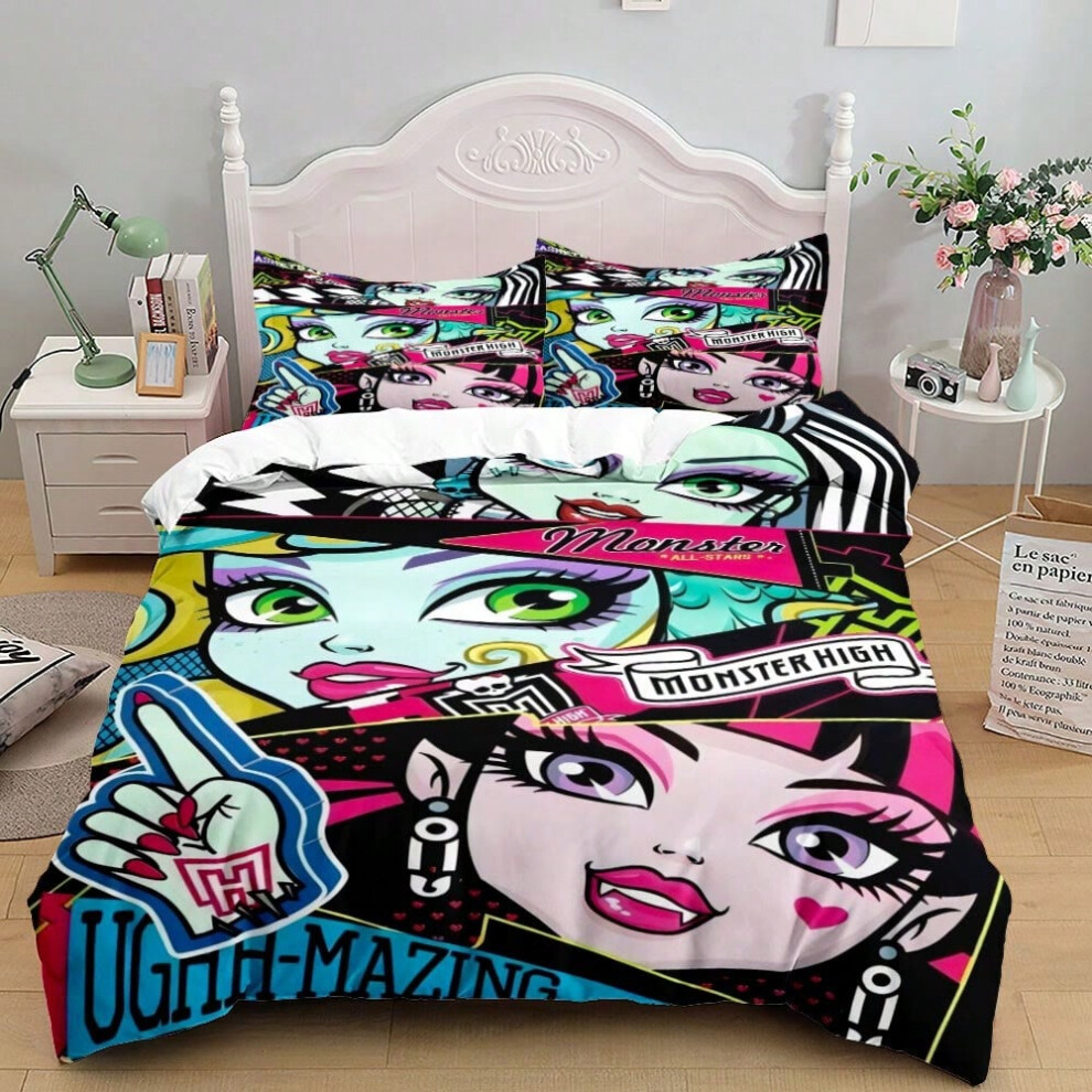 Kids' Club Bedding Children's Double Duvet Cover Girl's Bed Quilt Set Cartoon Sketch, Multicolor