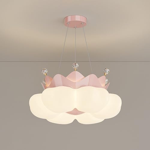 Umbratica Cartoon Crown Pendant Light, Metal Bedroom Hanging Lamp with Acrylic Shade, Modern LED Chandelier - 3 Color Modes, Children's Room Master Lighting Suspension Lamps