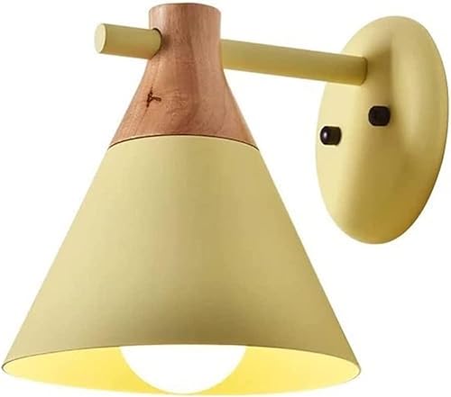 HYHJYMG Light Nordic Wall Sconce Wood Wall Light with Cone Metal Shade Modern Wall Mount Lamp Indoor Lighting Fixture Headboard Lamp, Children's Room Wall Lamps for Bedroom Bedside(Yellow) Light