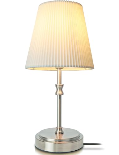 HSLighting Bedside Lamp, 12'' Touch Control Table Lamp Nightstand Lamps with Silver Base 3-Way Brightness Dimmable Desk Lamp Minimalist for Bedroom Living Room Children's Room Decor LED Bulb Included