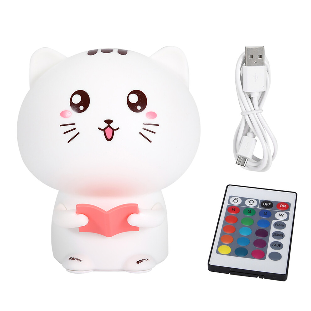 Multicolor Children's Bedside Lamp, Portable Kids Room Decor, Cute Cat Night Light with Recording Function for Personalized Messages, USB Rechargeable