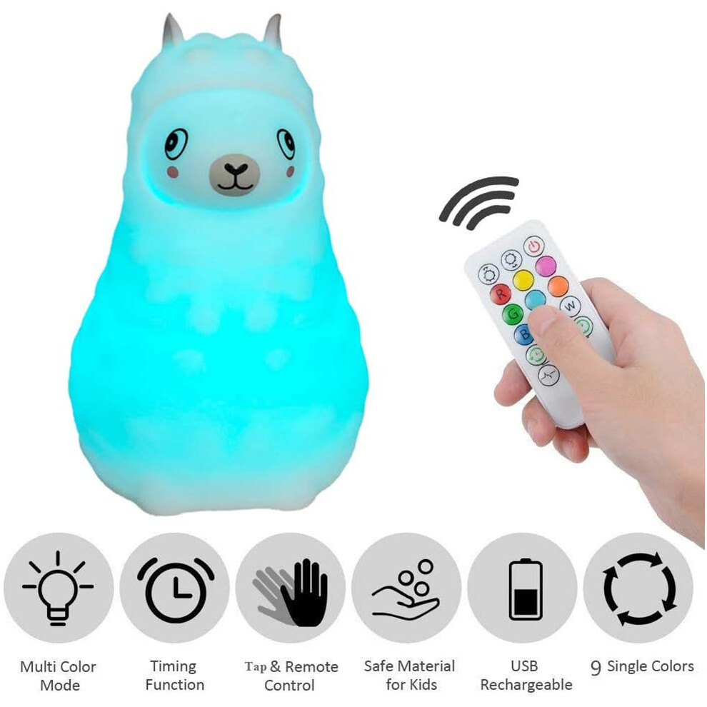 Safe Silicone Material, Adorable Night Light for Nursery, Children's Room LED Bedside Lamp Offers Multi Modes Illumination (9 Colors)