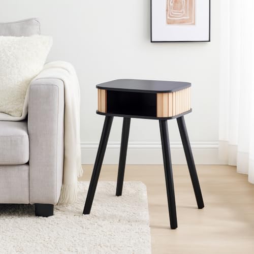 RHMM Simply Open Shelving Bedside Table Modern Nightstand with Storage Shelf, Minimalist Bedroom Side Table for Lamps, Books & Decor Durable Wooden Bedside Furniture (Black)