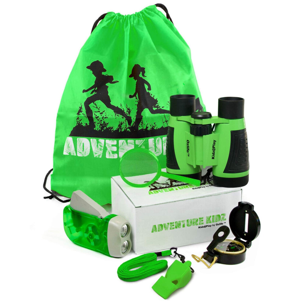 Adventure Kidz - Outdoor Exploration Kit, Children?s Toy Binoculars, Flashlight, Compass, Whistle, Magnifying Glass, Backpack. Great Kids Gift Set for