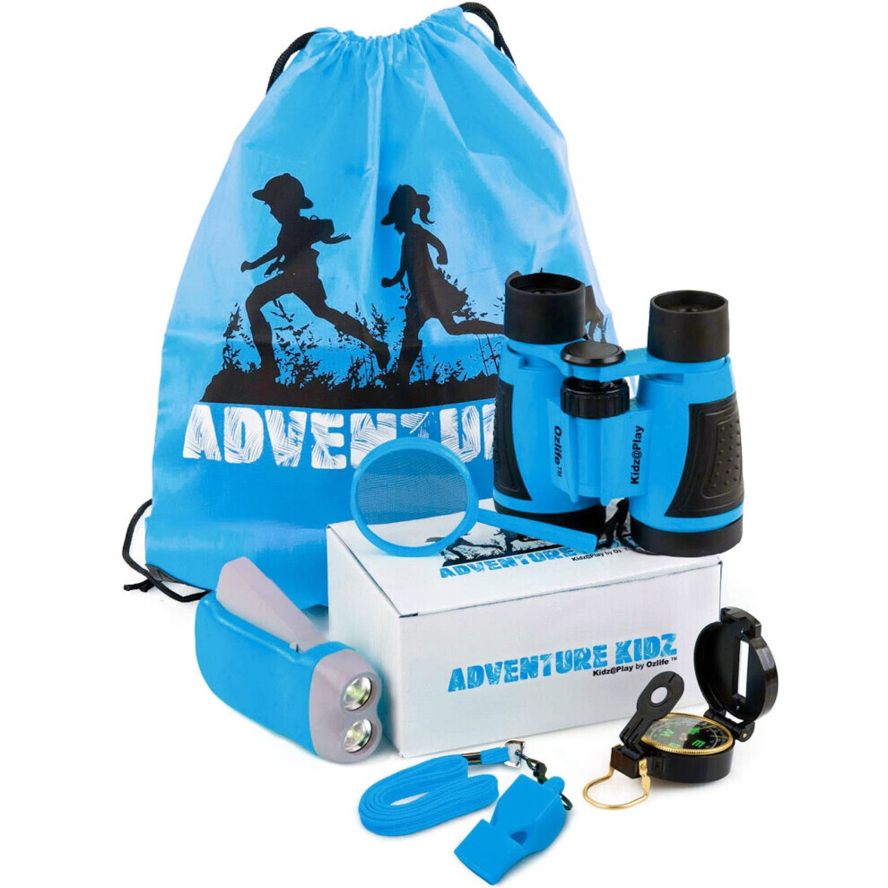 Adventure Kidz - Outdoor Exploration Kit, Children's Toy Binoculars, Flashlight, Compass, Fox Whistle, Magnifying