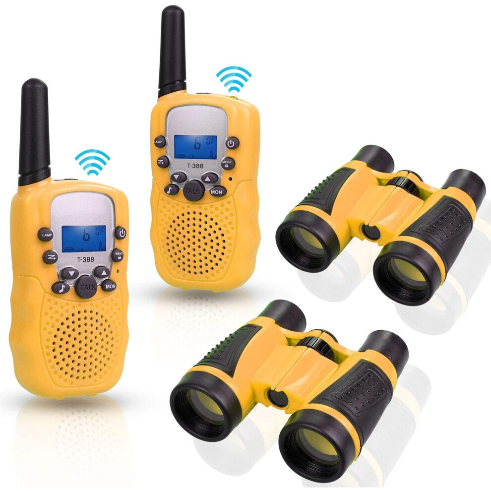2-piece walkie talkie set with 2 x 5x30 binoculars, children's radios 1-3KM range 8 channels, 2-way radio toy with torch LCD screen gift for