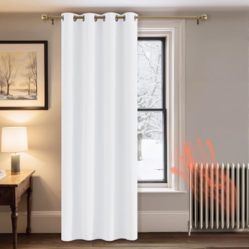 PONY DANCE 84 inch Drop Curtains - Door Curtain Blackout Thermal for Bedroom Window Treatment for Children's Room Decor Living Room, One Piece, Wide 52 - Long 84 Inch, Pure White