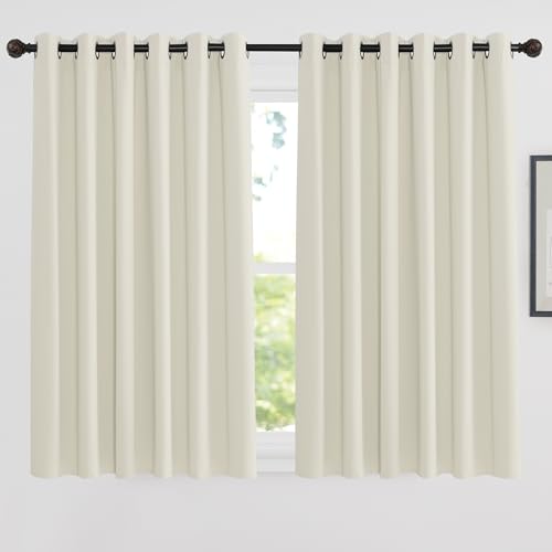 PONY DANCE Blackout Curtains with Grommets, Thermal Insulated Blackout Curtains for Living Room, Children's Room, Light Beige, 229 x 137 cm, 1 Pair