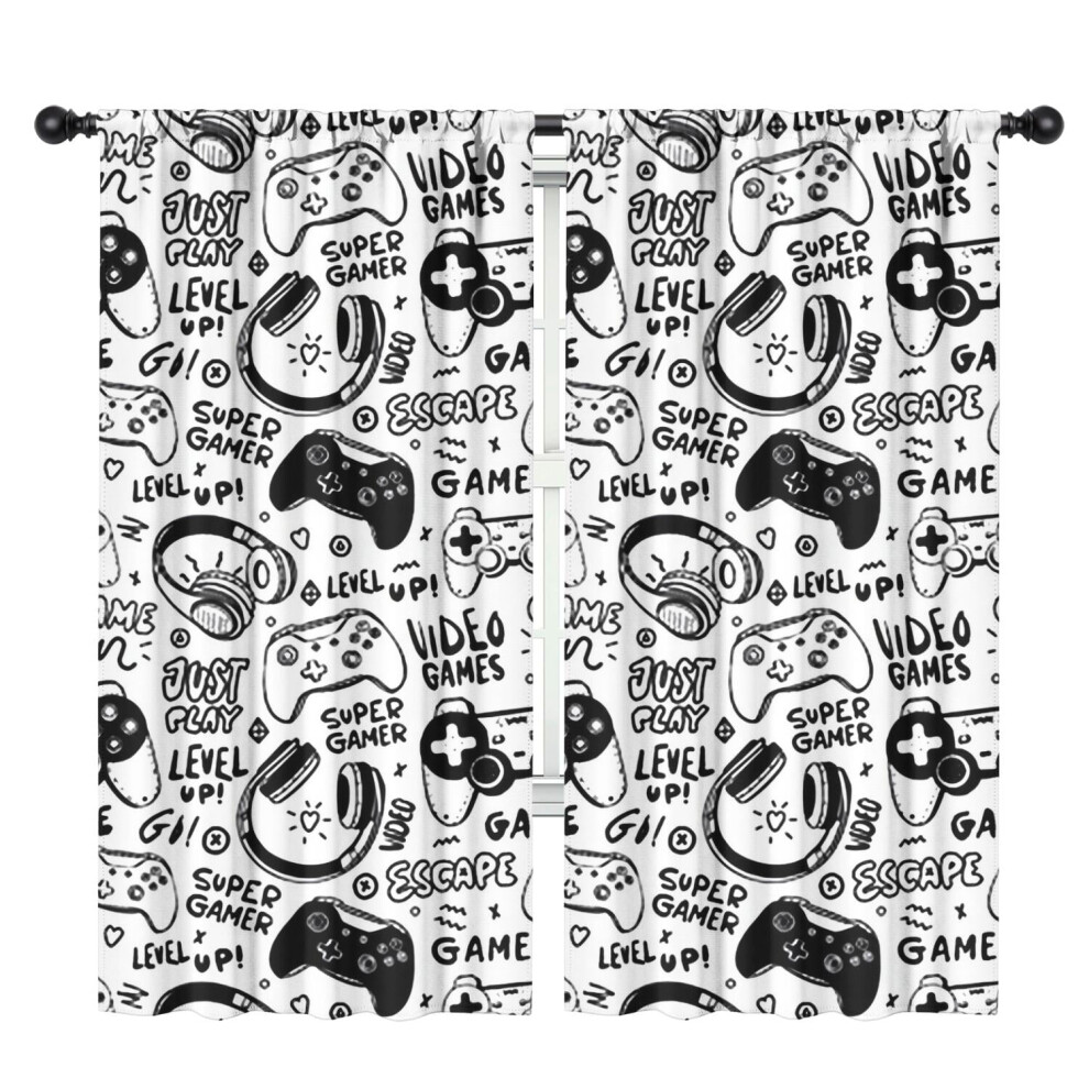 Video Games Pattern Blackout Kids Curtains,Childrens Insulated Curtains Set Of 2,Bedroom Essentials,Toddler Room Decor 42x84in(106x213cm)