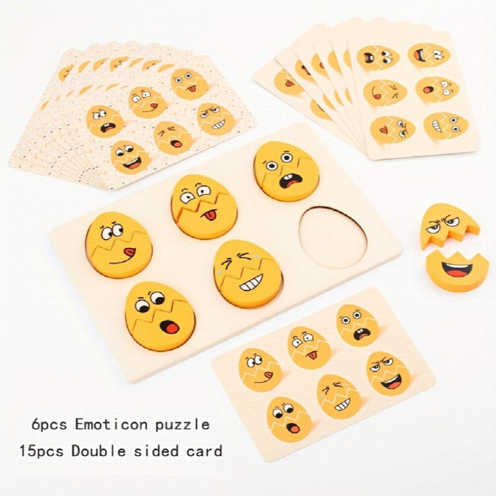 Preschool Childrens Wooden Fun Expression Egg Matching Board Baby Focus Training Parent child Interactive Games Puzzle Toys 3D Puzzle Enlightenment