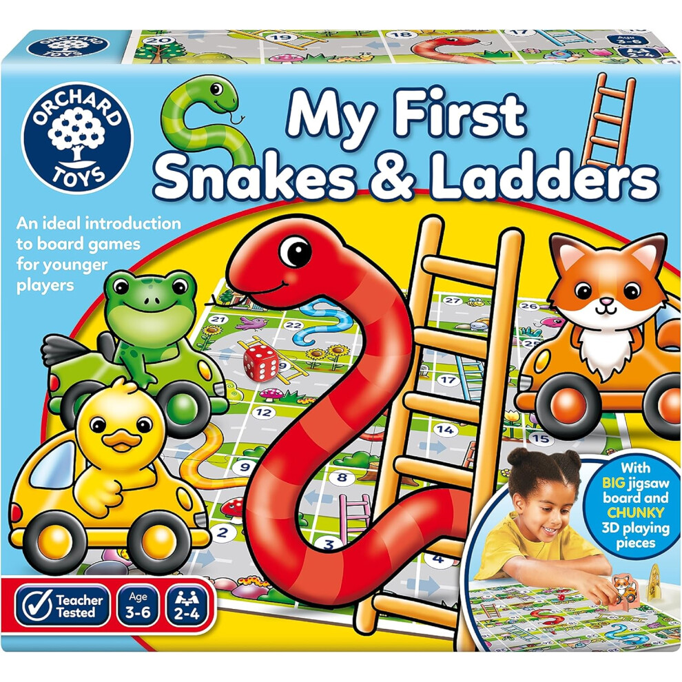 Orchard Toys My First Snakes & Ladders Game for Kids - Large Toddler Games w/Giant Colourful 3D Playing Pieces - Children's and Kids Board Games Age
