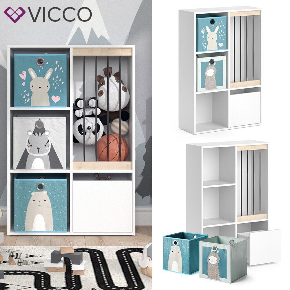 Children´s shelf book toy shelf shelving unit Luigi white folding boxes Vicco