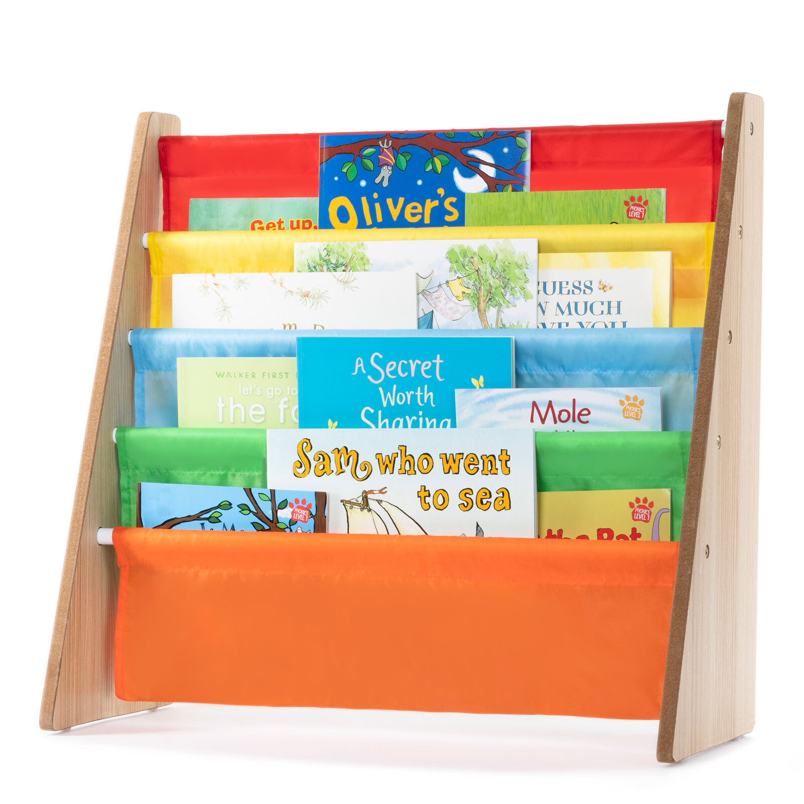 Childrens Kids Book Shelf Wooden Sling Storage Rack Organizer Bookcase Bookshelf