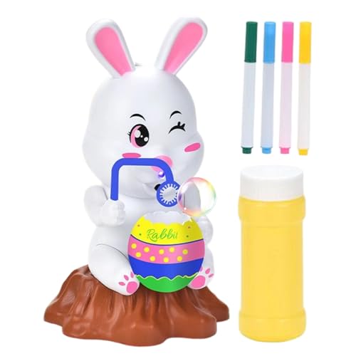 Children's Bubble Machine, Bubble Launcher with Music, Lights and Bunny Design – Small Machine with Painting Zone Design DIY – for Outdoor, Birthday, Wedding, Party