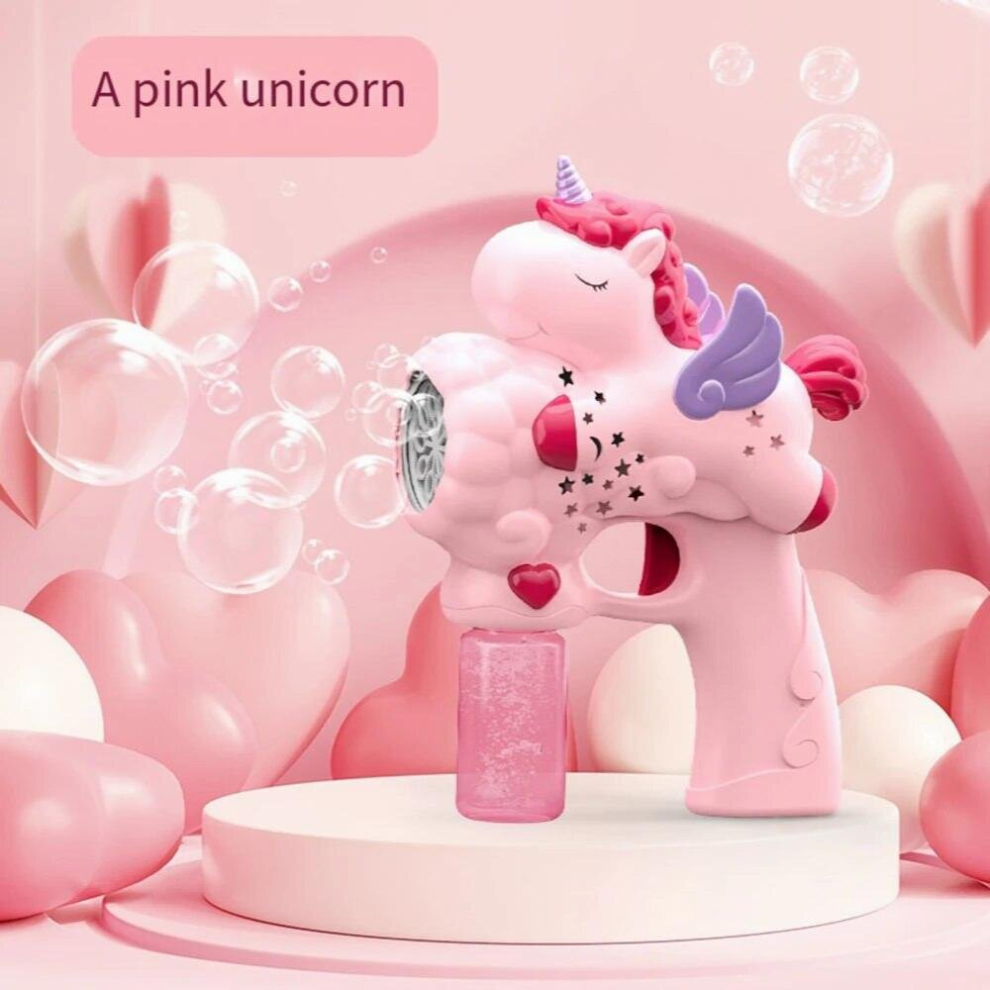 Pink Bubble Machine Maker Blower & Liquid Childrens Girls Kids Unicorn Toy