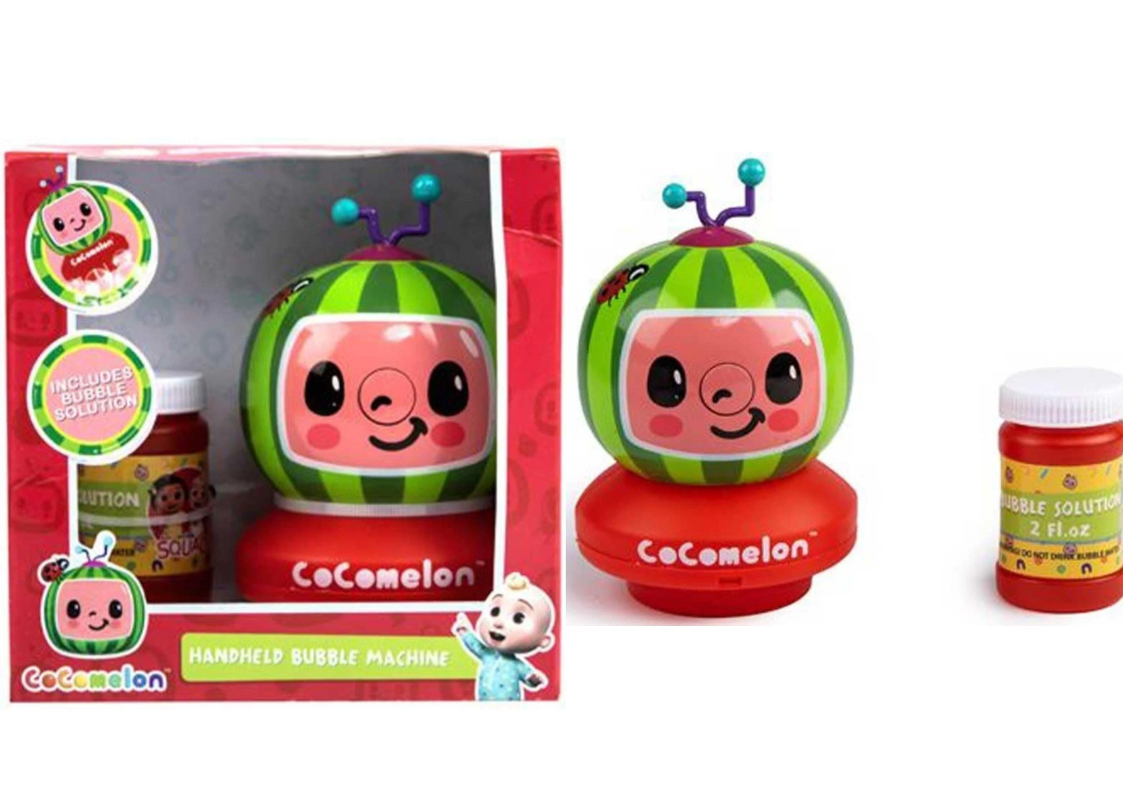 Childrens Kids Cocomelon Handheld Bubble Maker Machine Blower Toy & Liquid