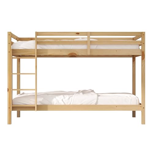 Homgoday Single Bunk Bed Children's Bunk Bed with Fall Protection and Slatted Frame Functional Bed Children's Bed Wooden Bed 90 x 200 cm Solid Pine Wood