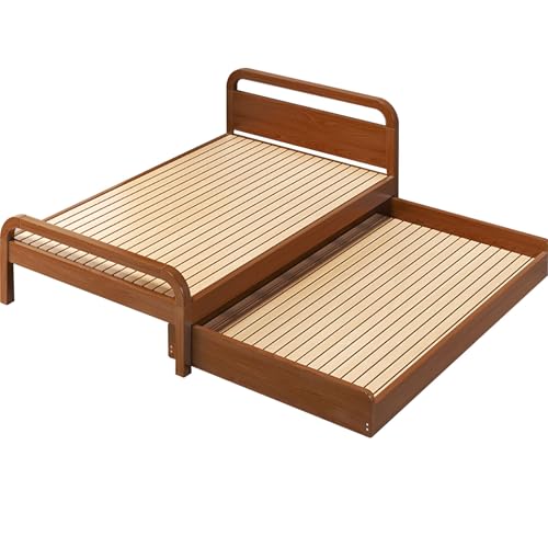 UVPSJDE Pull-out Solid Beech Wood Bed, Children's Bunk Bed, Space-Saving Design, Raised Footboard, Rounded Edges(Walnut)
