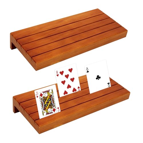 Tulov Pack of 2 Wooden Playing Card Holders, Playing Card Stand with Non-Slip Strips, Card Holder Children, Adults and Seniors for Family Card Games, Poker Parties, Canasta (24 x 10.9 x 4 cm)